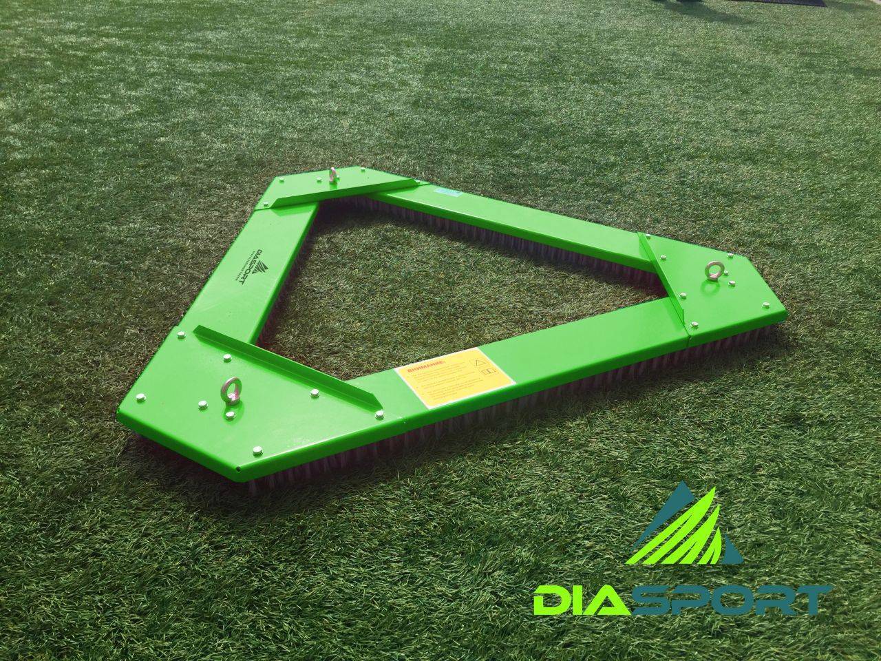 Ворсовая щетка треугольной формы, идеально подходит для полноценных футбольных полей с искусственным газоном. Основным преимуществом А-1800 является её геометрическая форма, которая позволяет прочесывать искусственный дерн под разными углами. Каркас щетки выполнен из стали 3 мм, что дает необходимую и достаточную нагрузку на траву для эффективной работы. Порошковая покраска сохранит блеск и защиту от коррозии на весь срок службы. Ворс может быть выполнен из серии «Medium» (белый, средней жесткости, с функцией «memory» предотвращающей замятие ворсинок) и серии «Hard» (черный ворс, агрессивное расчесывание). Щетка А- 1800 может использоваться с любым типом техники. Для удобства перемещения на объекте, на щетку возможна установка транспортировочных колес.