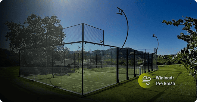 Портативная система для Падел-корта — это новое решение, позволяющее быстро устанавливать корт без необходимости анкерного крепления к основанию. Эта система подходит для временных мероприятий, арендуемых площадок, выставок.